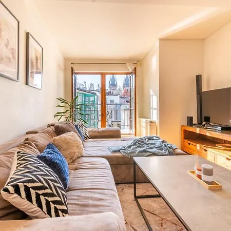 Apartmán Old Town Large Apartment With Terrace se nachází pouhých 1,1 km od Karlův most. Prašná brána je ve vzdálenosti 5 minut pěší chůze, a stanice metra Náměstí Republiky je asi 450 metrů daleko. Den noc nabízí jídla moderní kuchyně a středoevropské kuchyně v 50 metrech od ubytování. Jen pár kroků odtud je Židovské muzeum v Praze.